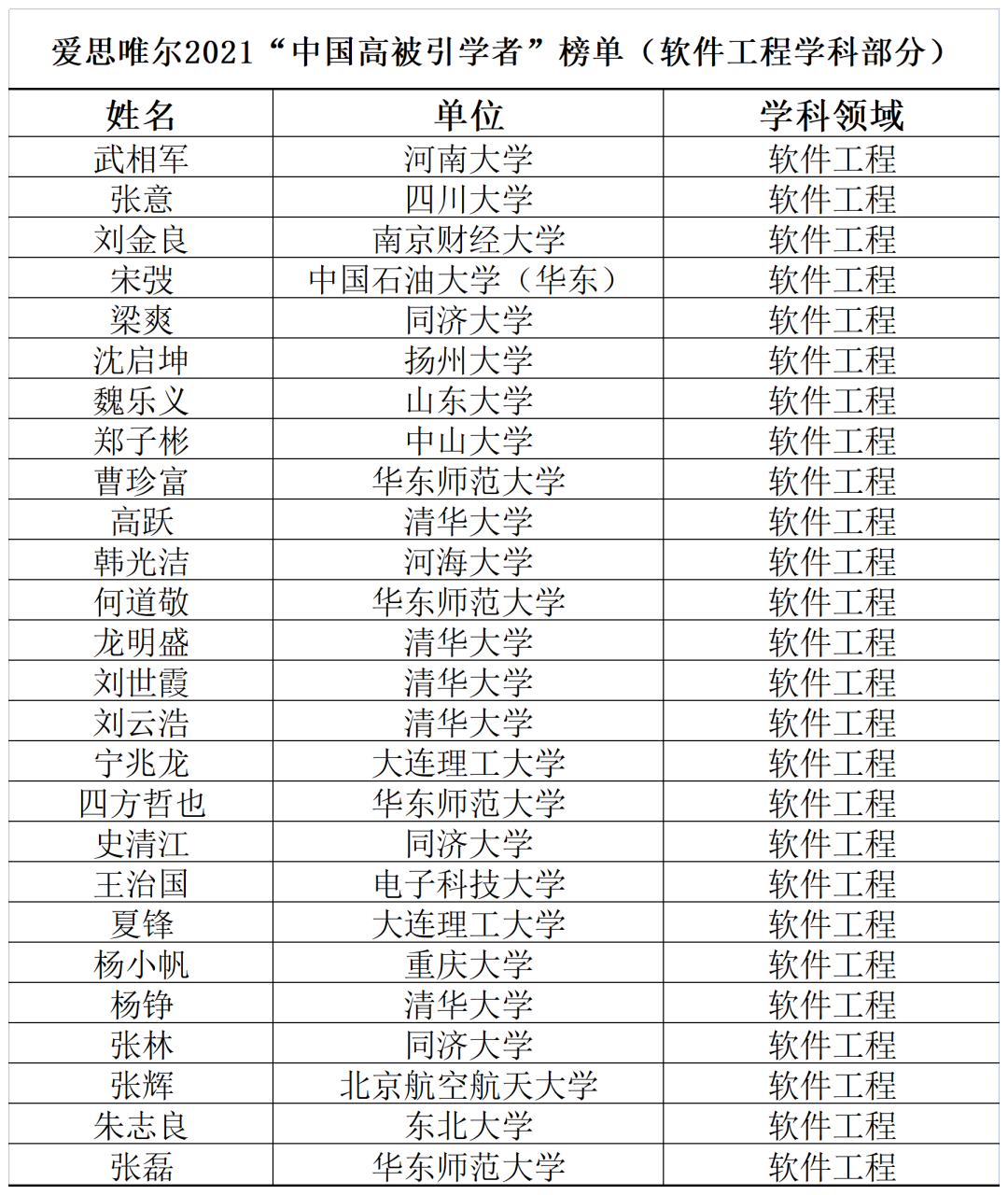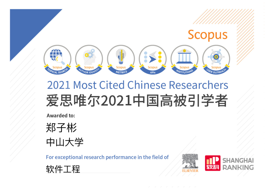 2021“中国高被引学者”——软件工程学科榜单