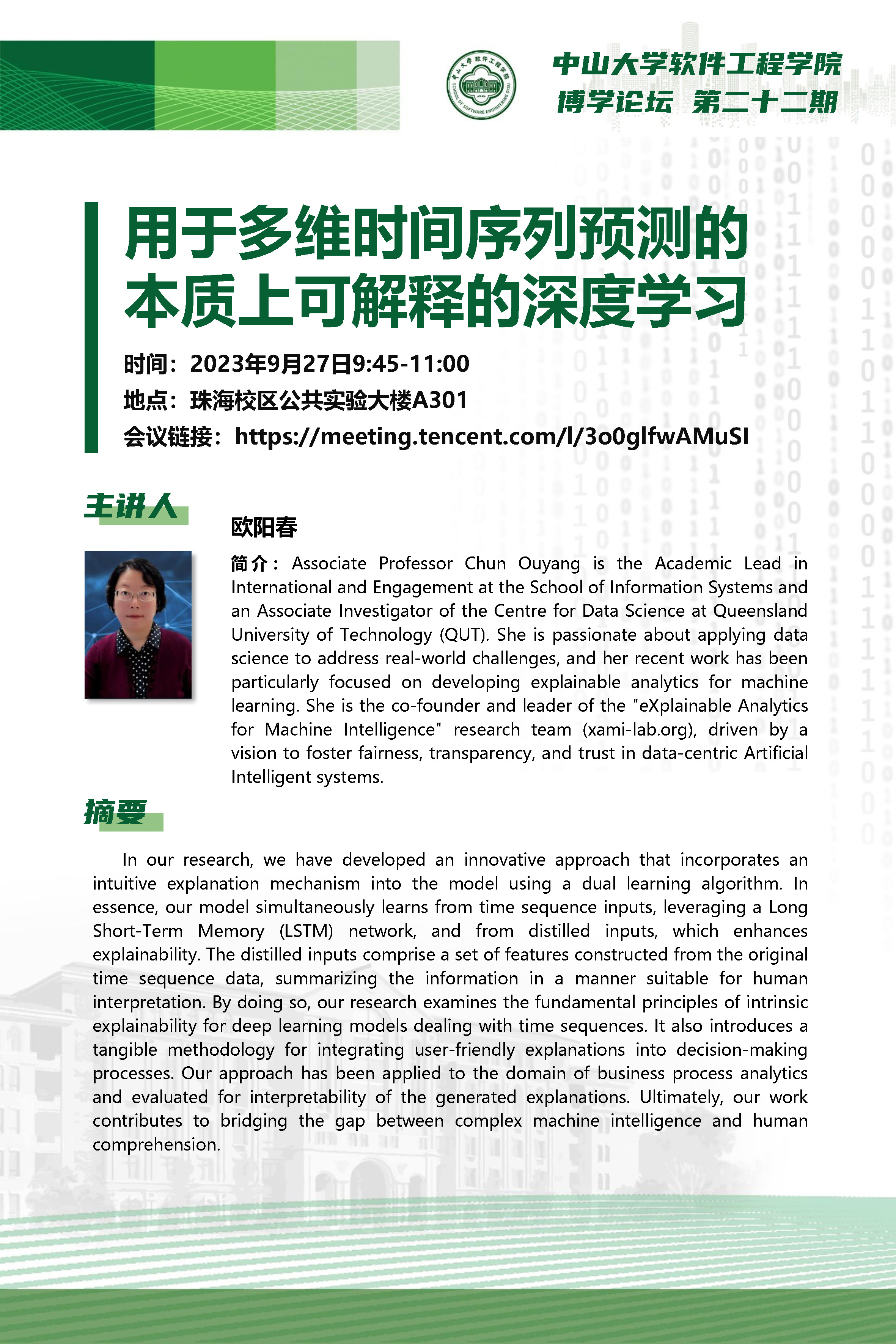 导航痕迹 js3845金沙线路 学术科研 学术讲座 博学论坛第二十二期:用于多维时间序列预测的本质上可解释的深度学习 博学论坛第二十二期:用于多维时间序列预测的本质上可解释的深度学习 发布日期:2023-09-26