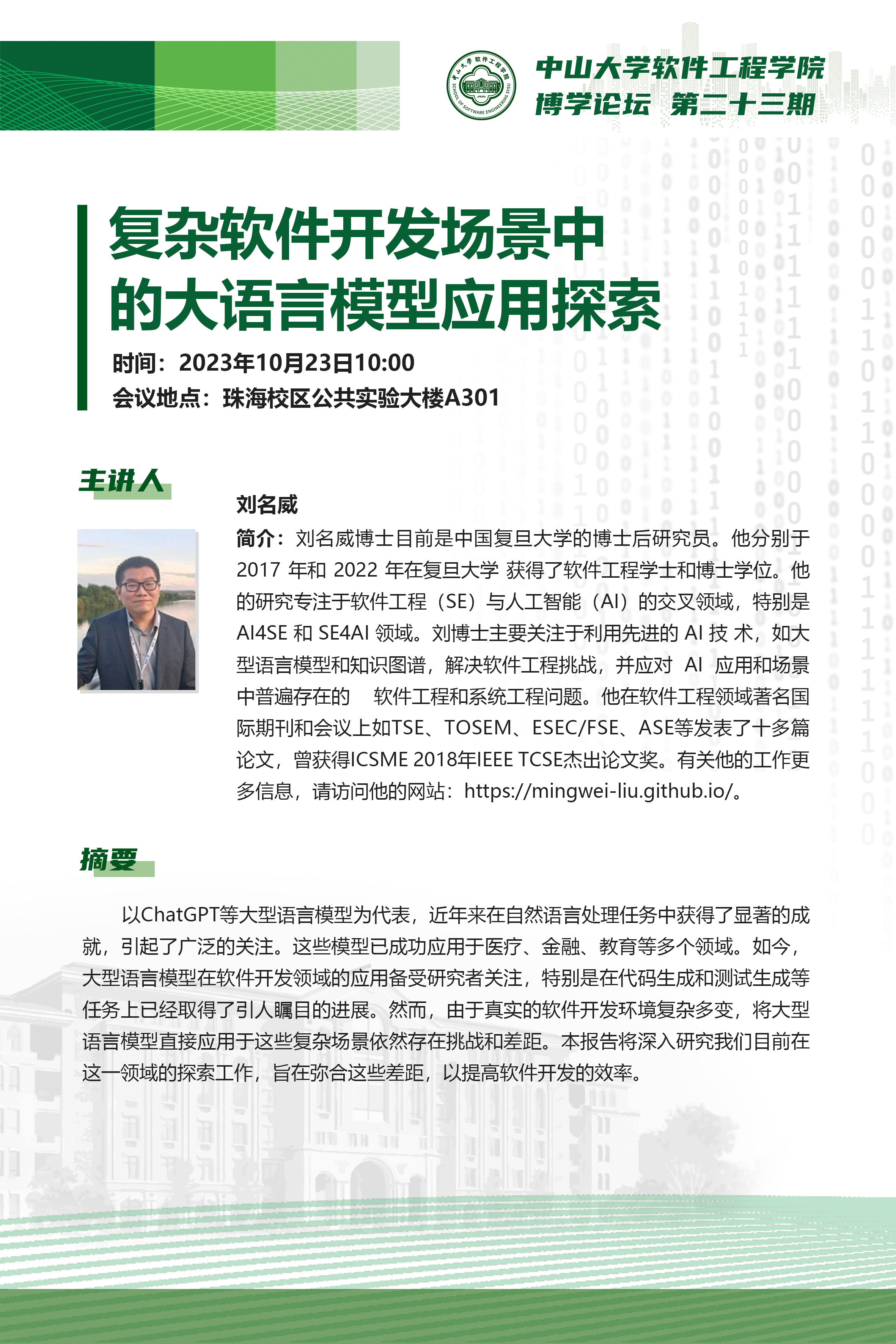 博学论坛第二十三期:复杂软件开发场景中的大语言模型应用探索复杂软件开发场景中的大语言模型应用探索