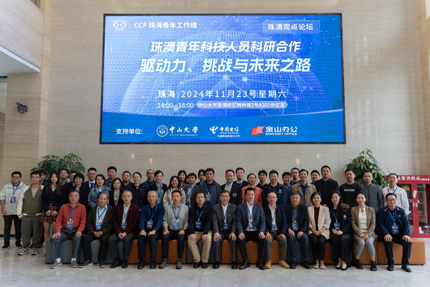 珠海与澳门在粤港澳大湾区科技合作中的重要性日益凸显,但资源分配不均、政策协调不足、跨境机制不完善等问题制约了青年科技人员的协作与发展。为破解这些难题,2024年11月23日下午,中国计算机学会(CCF)珠海青年工作组联合澳门科研人员在js3845金沙线路举办了以“珠澳青年科技人员科研合作:驱动力、挑战与未来之路”为主题的观点论坛。