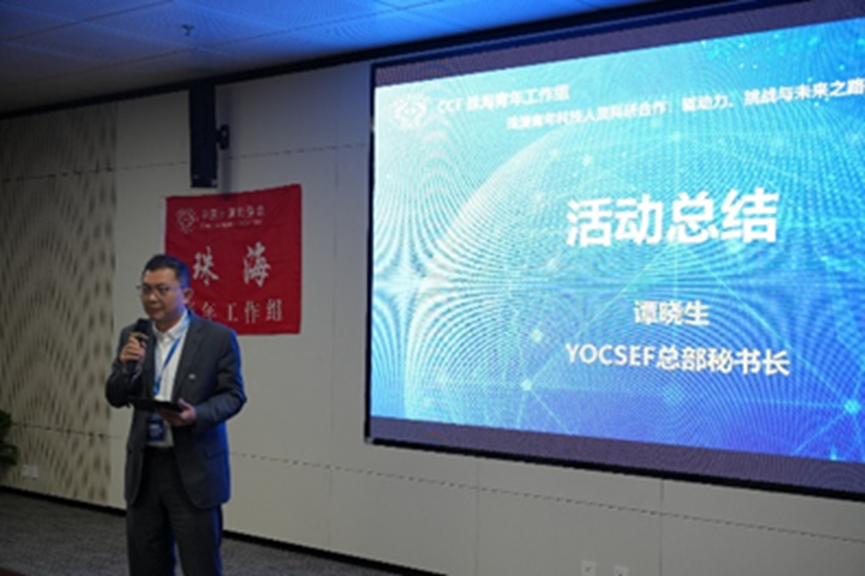 与会专家一致认为,深化珠澳合作需要青年科技人员的主动作为和创新引领。为此,论坛呼吁尽快成立“YOCSEF珠澳”,打造青年科技精英的高端交流平台,共促大湾区科技协作迈向新高度。本届YOCSEF总部副主席陈小军进行YOCSEF文化培训。CCF YOCSEF总部秘书长谭晓生在总结发言中,对论坛的成功举办表示祝贺,并提出改进建议。他指出,此次论坛不仅为珠澳科技创新与教育合作奠定了基础,还明确了当前合作中存在的行政管理、文化冲突和资源分配等问题的解决方向。