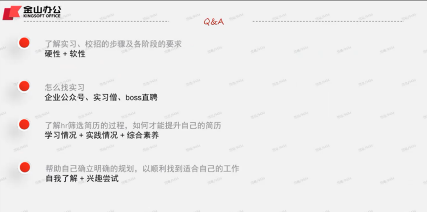 本期笃行沙龙由金山办公软件有限公司的人力资源总监范粤总经理主讲。她首先介绍了金山办公的发展历程、产品特点与企业文化,并围绕同学们实际的求职就业需求,详细分享了企业开发岗位方向、招聘与实习流程、简历撰写与面试策略等。此次分享使同学们更具体地了解了企业的人才需求和招聘标准,有助于更好地规划职业发展方向与路径,提升求职竞争力。