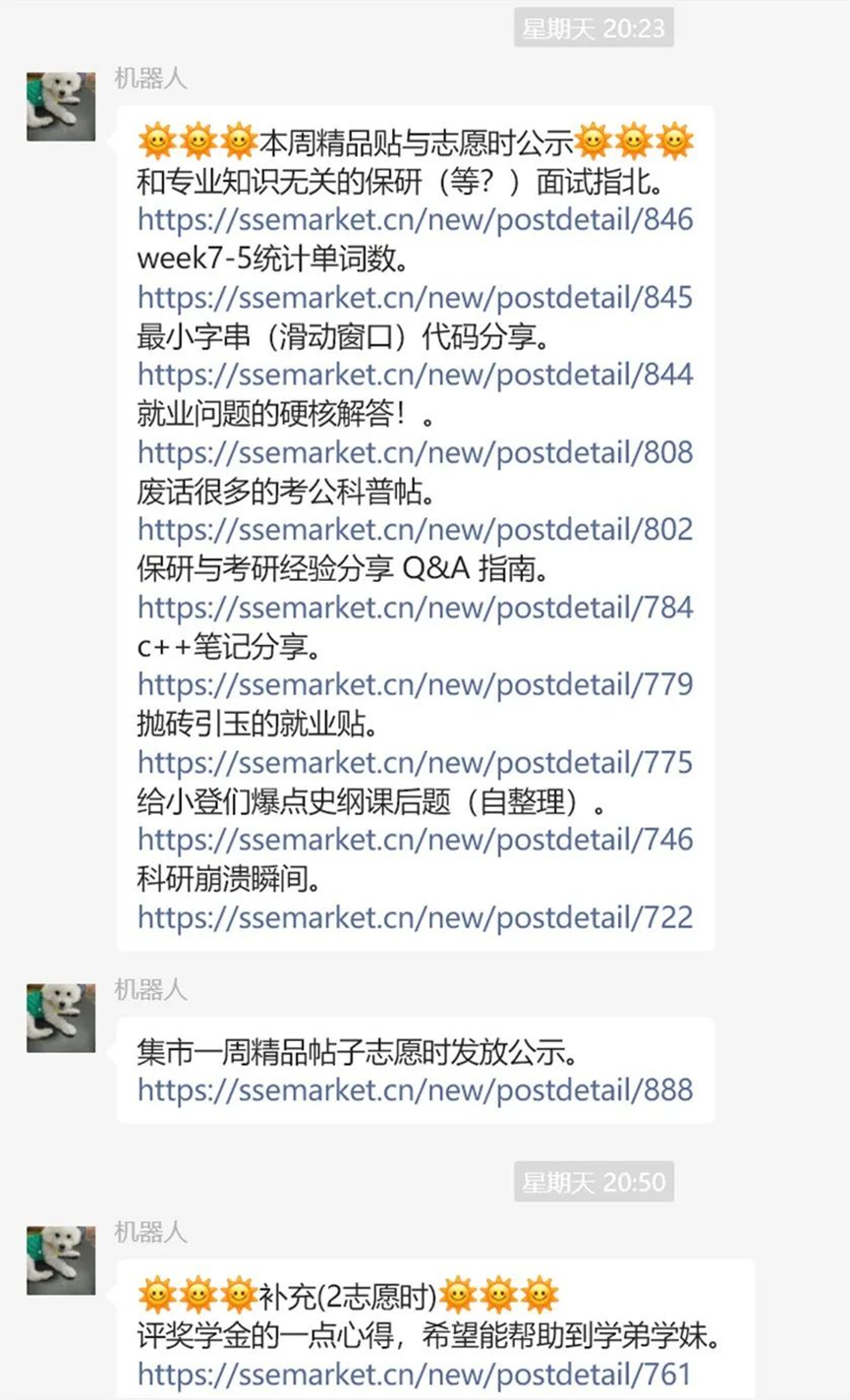 “SSE-Market”平台,大家可以发表日常吐槽,向老师同学们打听求助,进行课程学习或科研交流,了解院务、实习、就业招聘等多方面的信息。同时,大家还可以在课程专区中对指定老师进行提问,提出自己对课堂教学和课程设置的想法和建议。这些内容都将会留存在平台中,让接下来学院的每一届同学都能获取到学长学姐留下的宝贵经验。