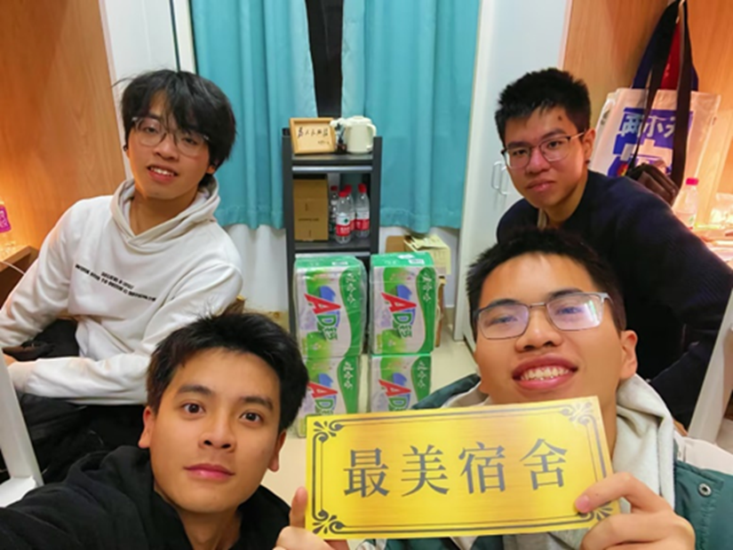 在宿舍文化建设活动中,同学们从四个项目:“寝国寝城”最美宿舍装饰活动、“相寝相爱”宿舍微电影拍摄活动、“绝室无双”宿舍收纳分享活动和“文明寝室,野蛮体魄”运动打卡活动中任选,制作属于自己宿舍的文化作品。