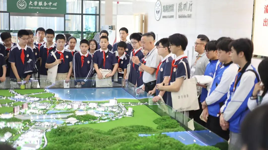 当日下午,在校区管委会郑子飞老师及学院彭晓、林柱良和黄振邦老师的指引下,两所中学的师生们参观了珠海校区陈列厅、js3845金沙线路实验室及中国空间站工程巡天望远镜粤港澳大湾区科普中心,了解校区从基础规划到跨越式发展的建设历程,感悟“敢为天下先”的奋斗精神,并近距离观摩国家级课题研究设备,了解计算机科学、人工智能、航天技术等领域的创新成果。