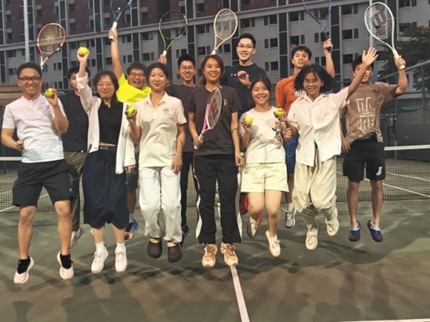队长(龚敬): 作为新成立的队伍,我们起初遇到了如网球动作与技能不协调、队员之间配合生疏等问题,但就像网球比赛中的“破发”一样(在对手的发球局中成功赢下该局,即“打破”对方的发球优势),我们每一次训练都充满了探索与热情,一路并肩作战、互帮互助,成功克服了这些困难。