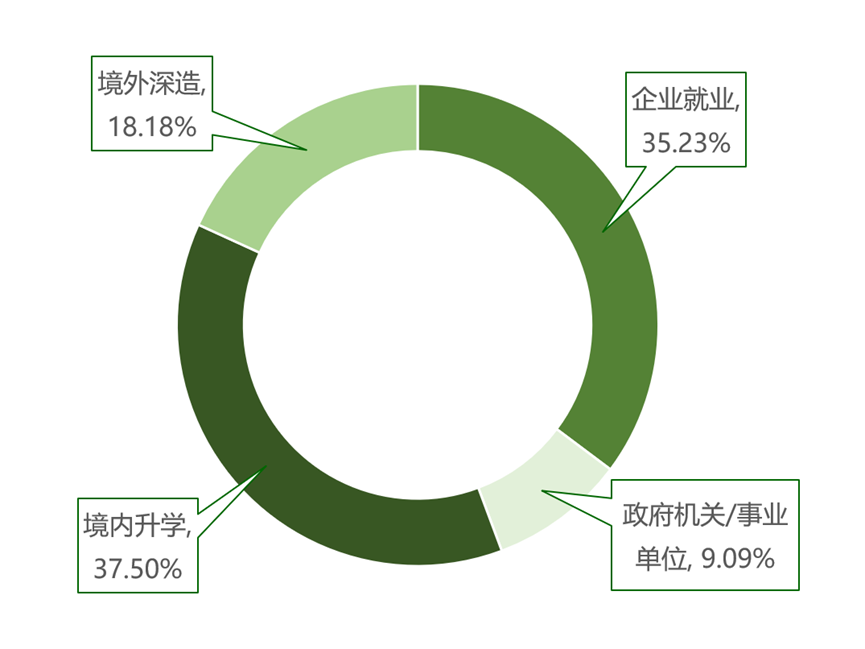学院2024届和2025届毕业生中,本科生深造率接近66%,深造去向包括北京大学、复旦大学、浙江大学、英国帝国理工大学、香港大学、新加坡南洋理工大学等。部分就业毕业生进入国家政法机关、华为、腾讯、中国南方电网等单位。
